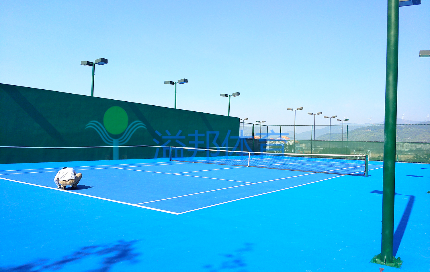1、試 水:對球場試水,測試場地平整度,灑水一小時后,在凹陷積水超過3mm處用粉筆做記號,不可使用蠟筆或油性筆,以免污染瀝青地面
