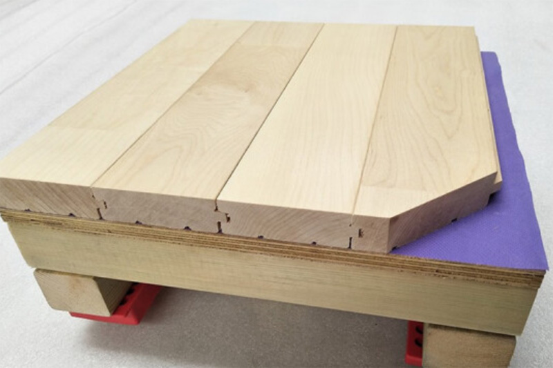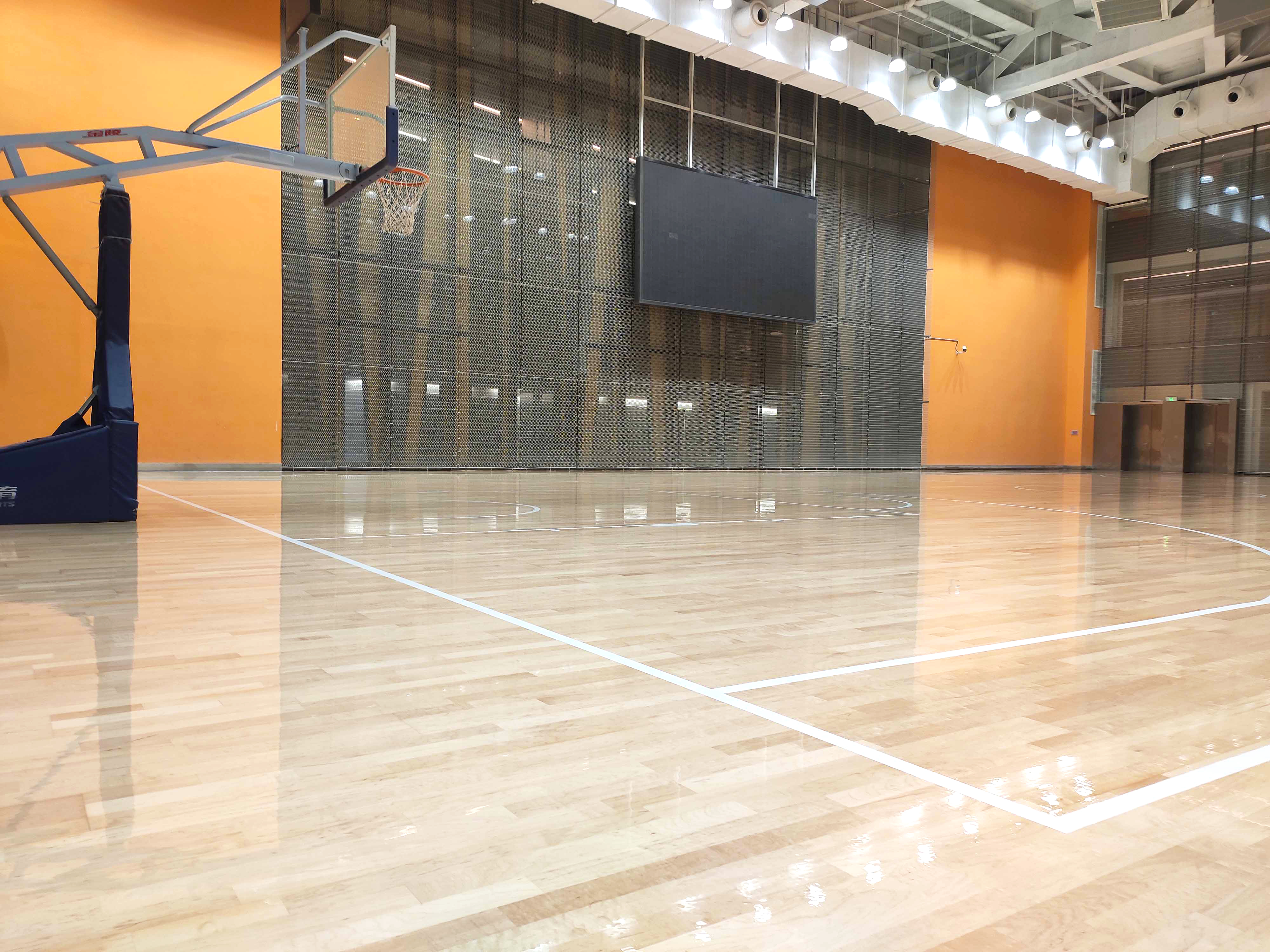 木地板籃球場(chǎng)是鋪設(shè)楓木運(yùn)動(dòng)地板,這種木地板彈性好,運(yùn)動(dòng)更加舒適