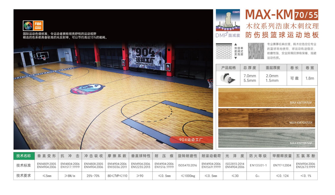 地板表面的類人體工程學(xué)不規(guī)則圓形紋理弧邊設(shè)計(jì),使滑動(dòng)系數(shù)為最佳值,使運(yùn)動(dòng)員有更佳的活動(dòng)能力,為起動(dòng)、蹬跳、滑步、制動(dòng)等各種專業(yè)劇烈技術(shù)動(dòng)作提供極具爆炸力的彈性動(dòng)力結(jié)構(gòu)。