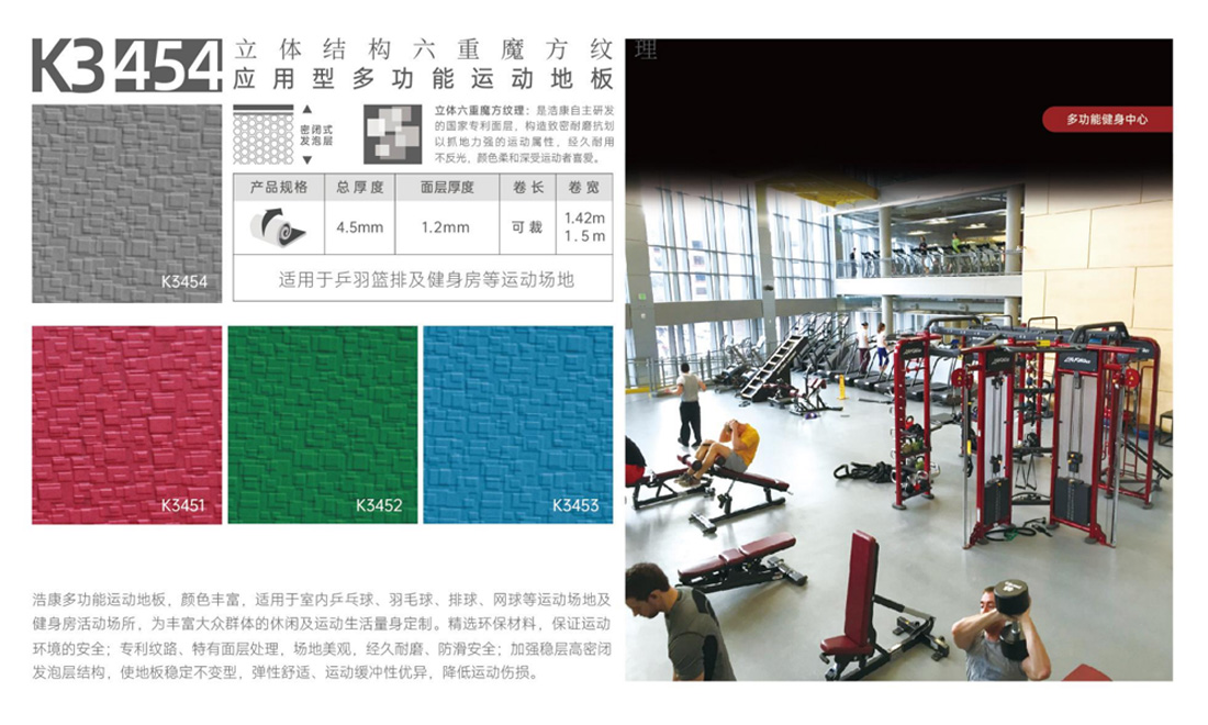 ⒊ 人性化的設(shè)計組合,與眾不同的場地色感,防滑且回應(yīng)動力極強(qiáng),防擦傷紋理,全新技術(shù)開發(fā)的PVC發(fā)泡緩沖層為健康運(yùn)動帶來可靠保障,為專業(yè)運(yùn)動員、普通健身民眾提供極好的運(yùn)動緩沖保護(hù),可最大限度地減小運(yùn)動員的損傷,令您放心地馳騁在運(yùn)動賽場上屢奪佳績。