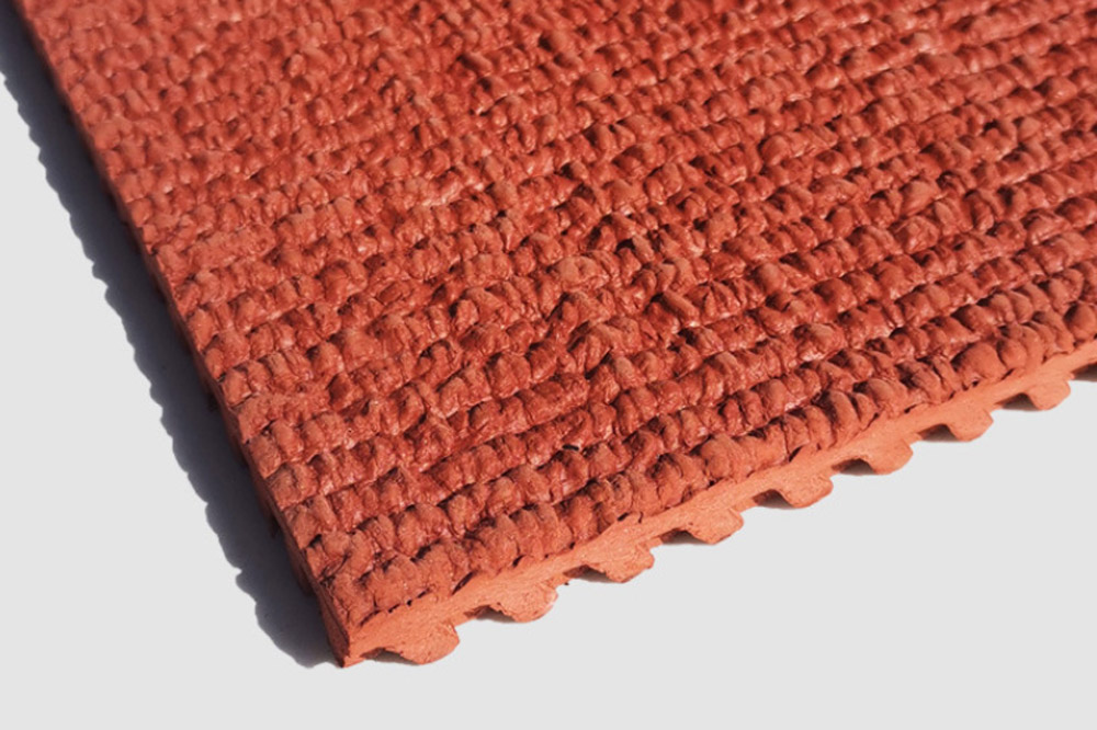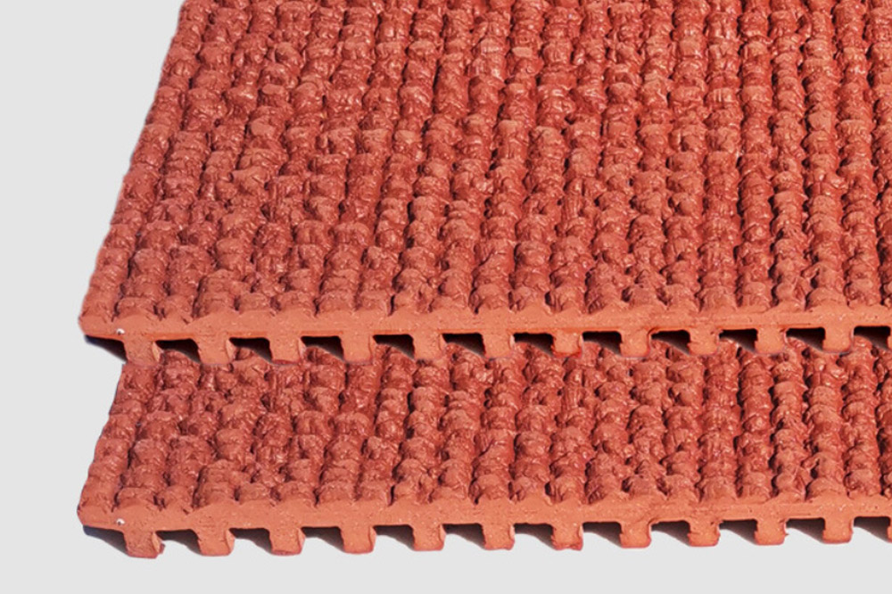 1、產(chǎn)品的防滑表面是采用預(yù)制壓模印花成型工藝制作而成,很耐磨且無掉顆?,F(xiàn)象。 2、產(chǎn)品的面層采用了高含膠量配方和添加高耐磨材料配方,保證了產(chǎn)品具有很強(qiáng)的拉裂強(qiáng)度和很好的耐釘刺、耐磨損的性能。